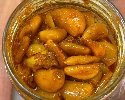 Garlic pickle — often called lahsun ka achar in Indian cuisine — is a spicy, tangy condiment made by pickling whole or slightly crushed garlic cloves with spices, oil, and sometimes acidic elements like lemon juice or vinegar. It’s popular in many regional cuisines and is loved for its bold and pungent flavour.